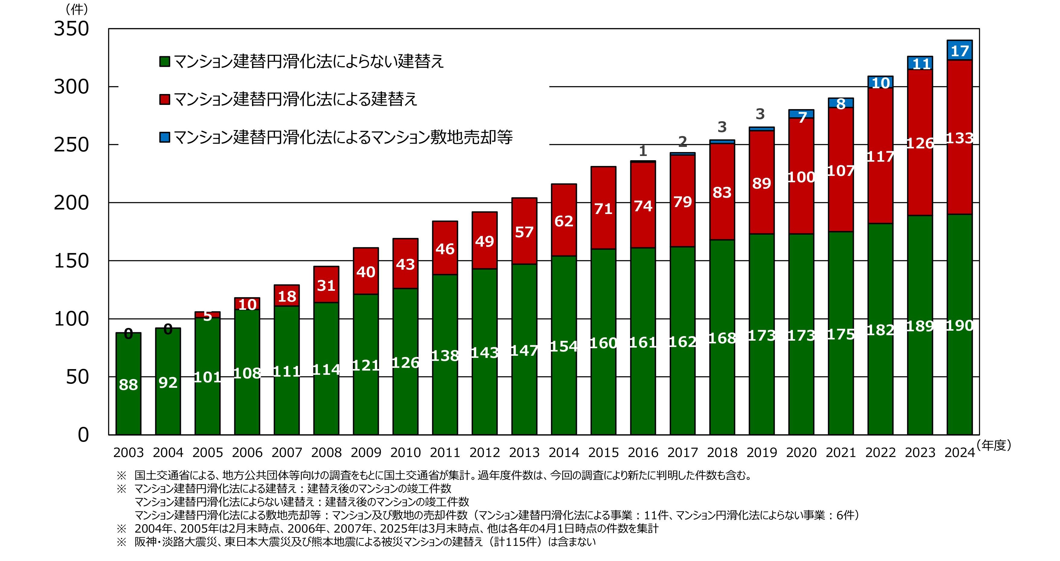 ▲マンション建て替え等の実施状況(国土交通省の資料より抜粋)