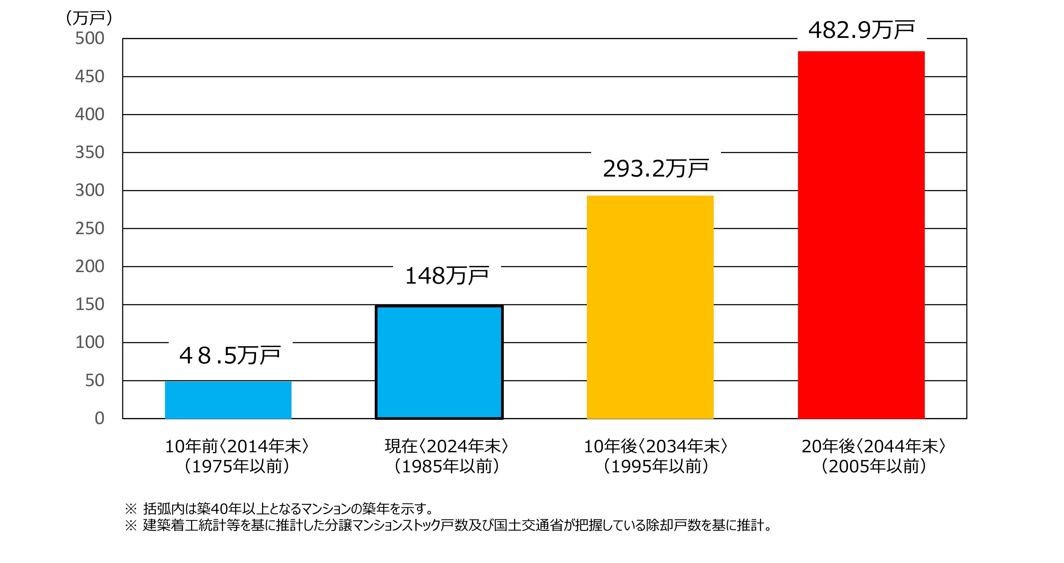 ▲築40年以上のマンションストック数の推移(国土交通省の資料より抜粋)