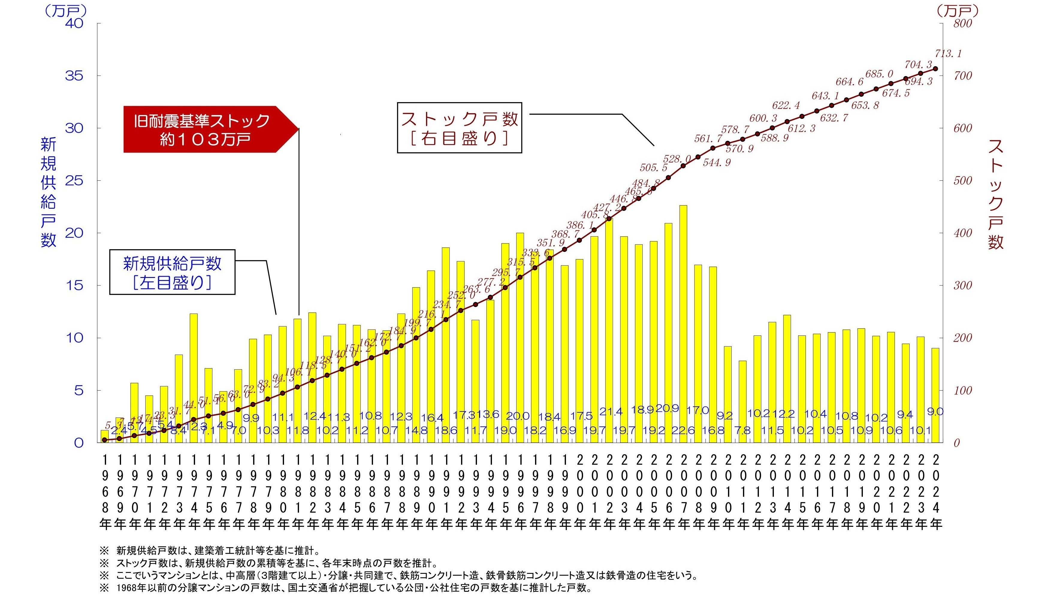 ▲分譲マンションストック数の推移(国土交通省の資料より抜粋)