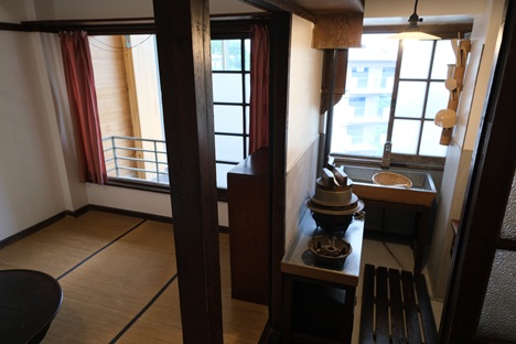 移築された世帯向け住戸には6畳の茶の間と4畳半の寝室があり、台所には流し台、ガスコンロ台、ダストシュート、米櫃、炭櫃が備わる。トイレは和風水洗式で、照明が玄関の明かりと兼用だった。浴室はなく、住民は敷地内の共同浴場を使用していた。現代の目で見ればいささか不自由さを感じるものの、建設当時は最先端の高級住宅として、世間の注目を集めたという。