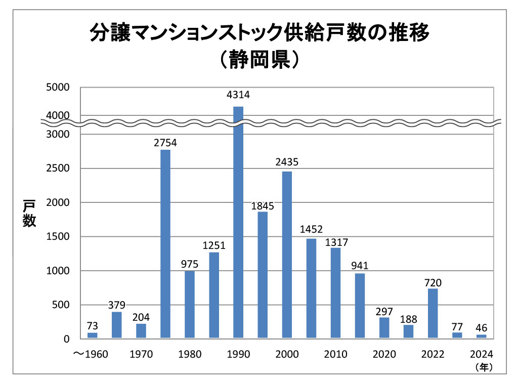 ▲静岡県の分譲マンションストック供給戸数の推移