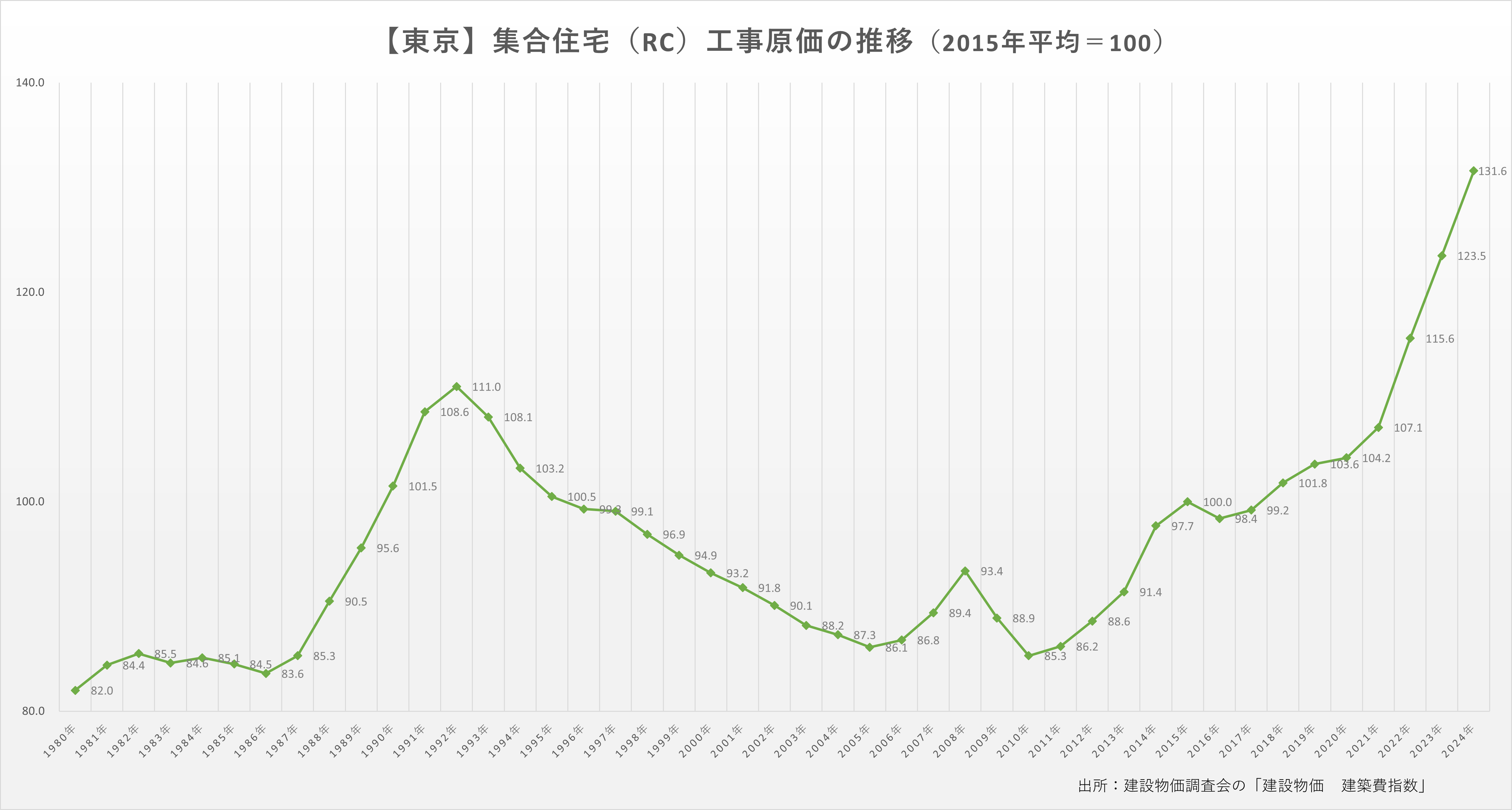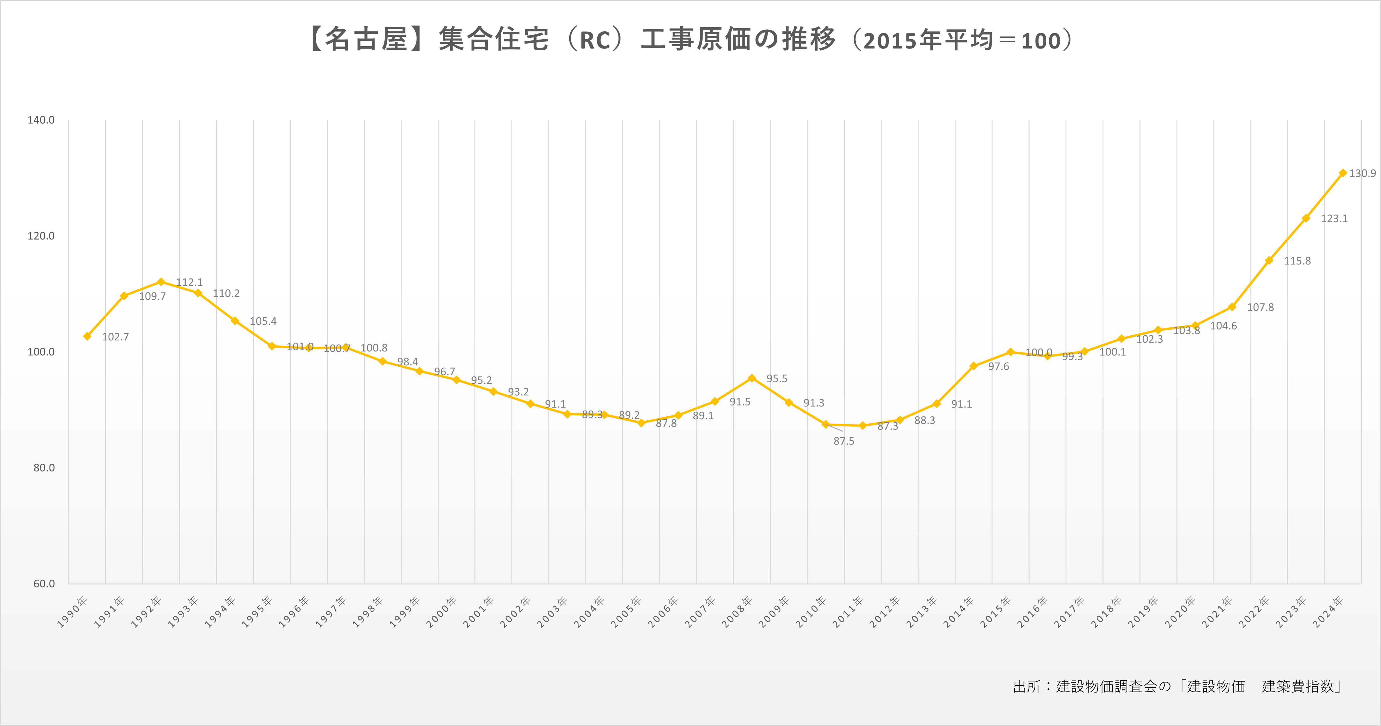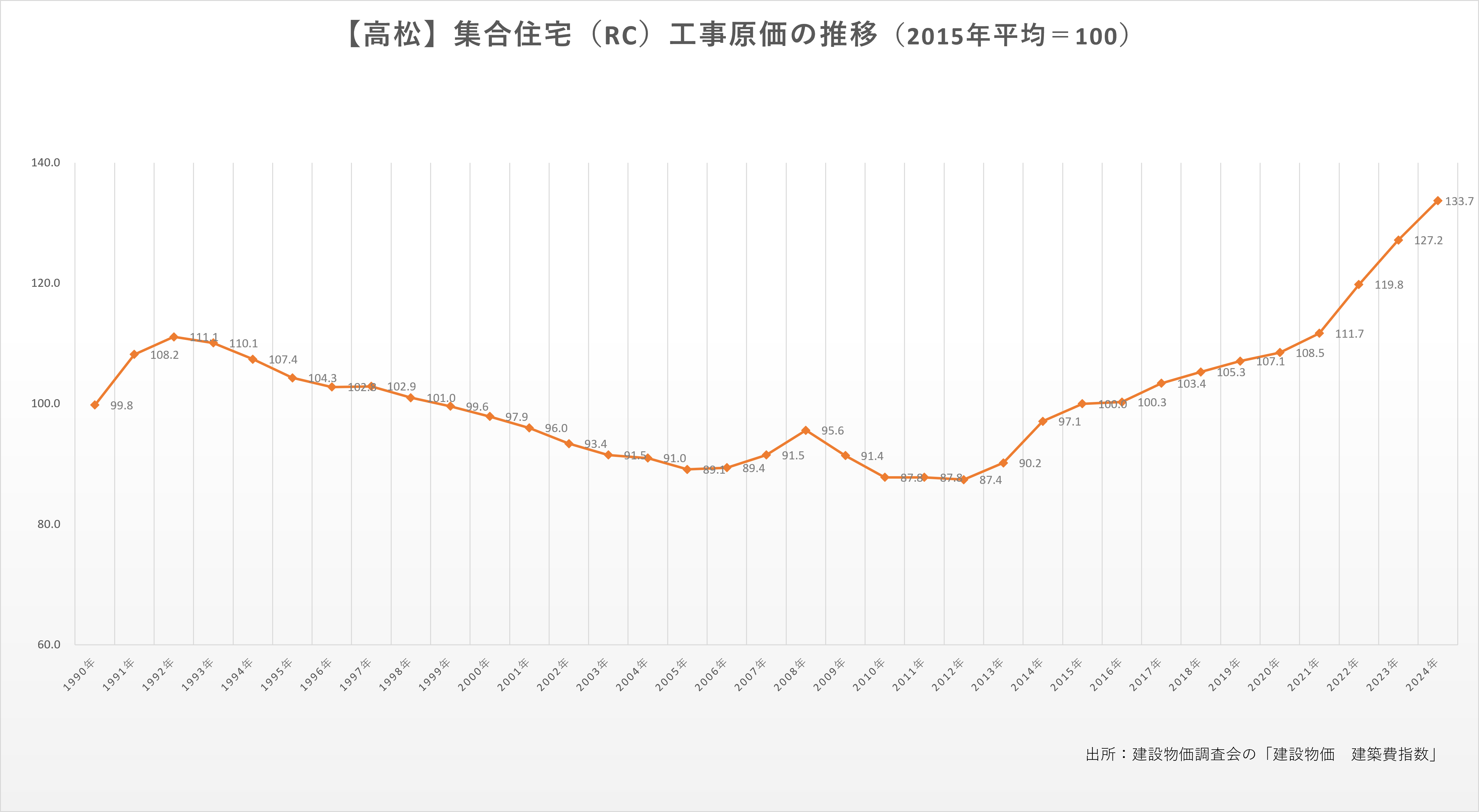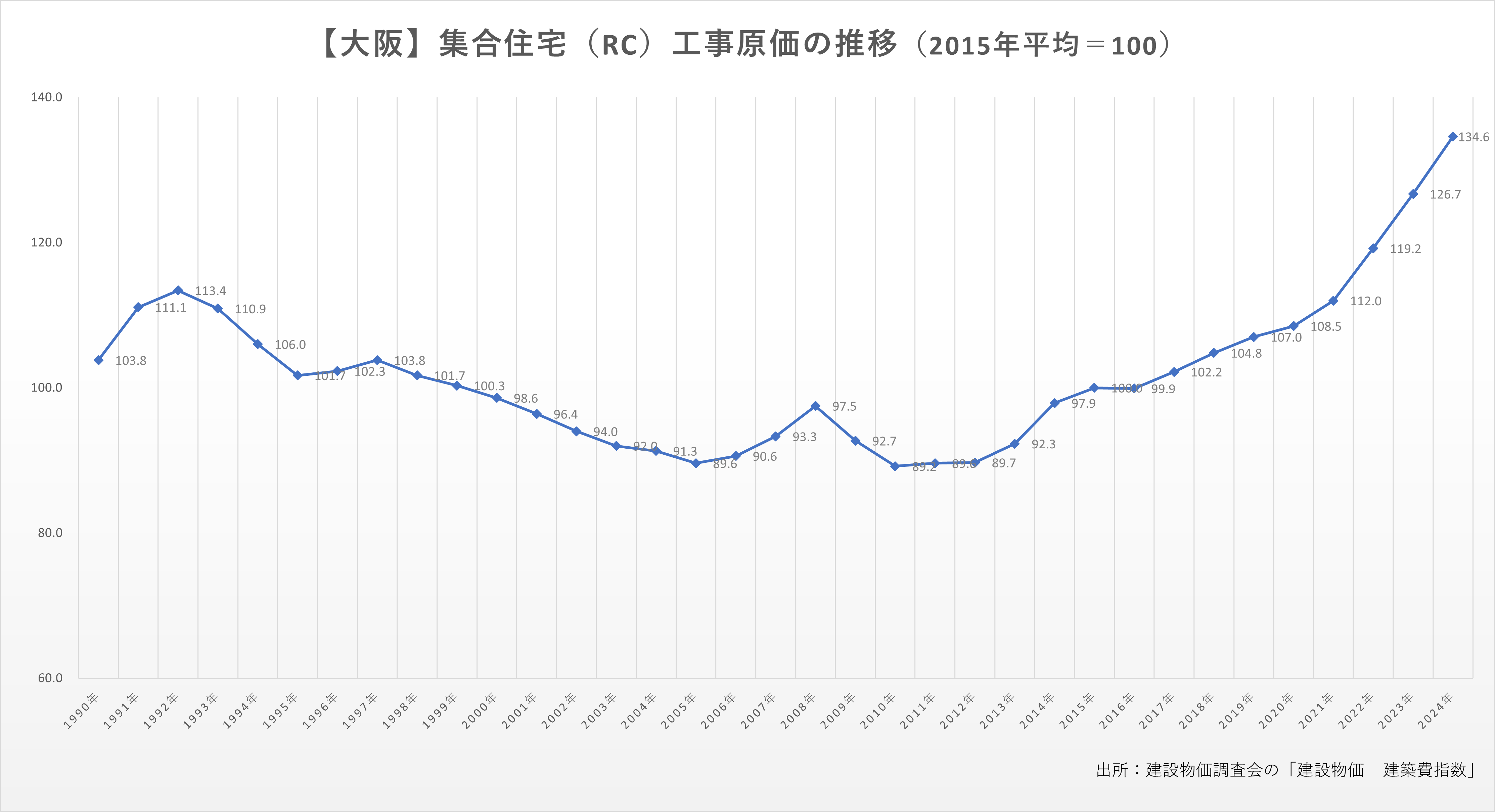 各地域の集合住宅(RC)工事原価の推移