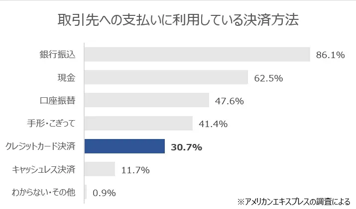 とはいえ、建設業の支払い手段は銀行振込が圧倒的だ。同社が23年に行った調査では、86・1%と大半を占めた。次いで現金が62・5%を占め、口座振替が47・6%、手形・小切手の41・4%が続いた。クレジットカード決済は30・7%で、定着は道半ばと言える=グラフ。