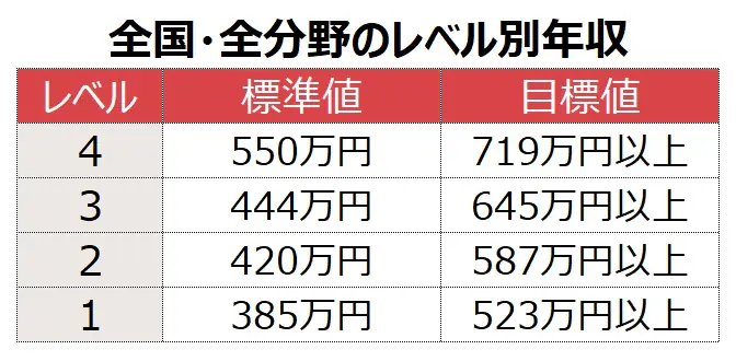 目標値は各レベルの平均以上という位置付けで、「適正な賃金」としてこの水準での支払いを推奨する。標準値は各レベルの下位15%程度にあたり、これを下回る支払い状況の事業者については、注文者との請負契約で労務費ダンピングの恐れがないか重点的な確認対象にするとした。建設業法上の指導にもつながる、より重い基準としてレベル別年収が位置付けられた形だ。